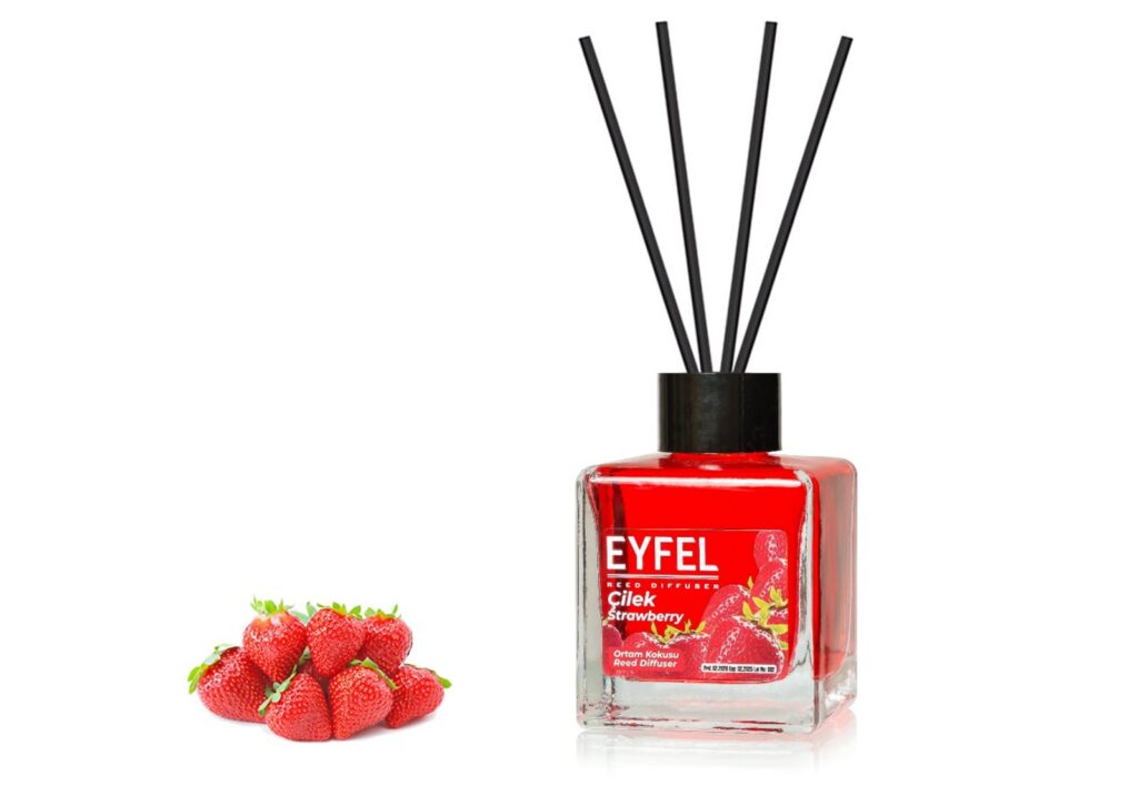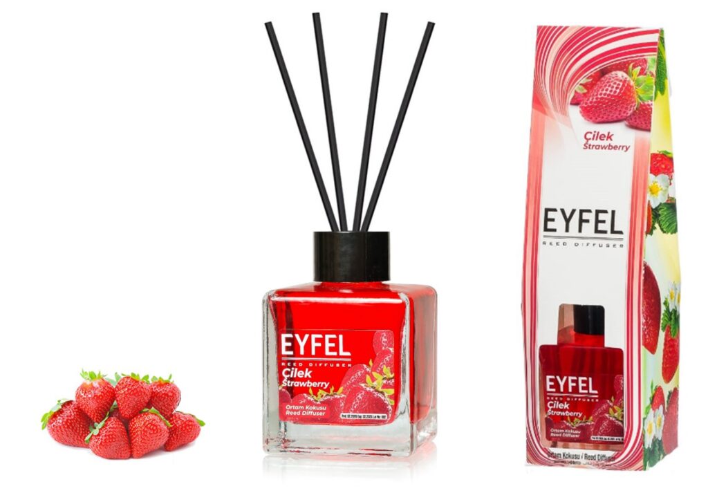 Cel mai important factor care distinge parfumul ambiental Eyfel Strawberry de alte mirosuri ambientale este acela ca este amestecat direct in productia de capsuni de munte pe baza parfumului sau intens si aromat.